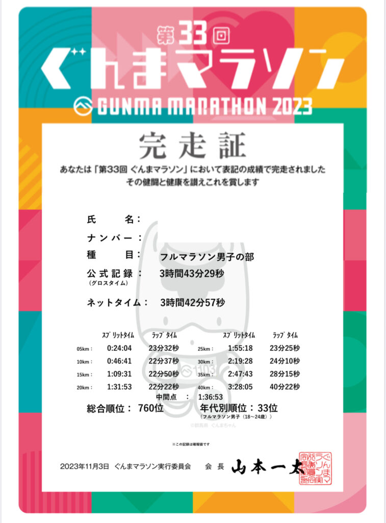 私が初めてフルマラソンに出場したのは2023年 33thぐんまマラソン